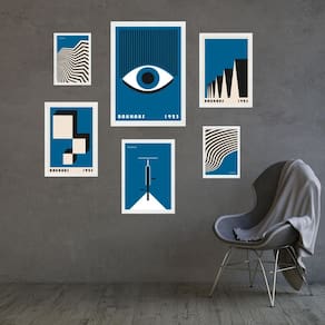 Kit composição 6 quadros artes bauhaus azuis Cor: moldura preta Informações do produto tire todas as suas dúvidas no descritivo abaixo: decoração para quarto, sala, cozinha, escritório, área gourmet e muito mais. Chega de paredes vazias medidas - kit composto por 6 quadros, sendo 2 quadros com medida 18x24cm, 3 quadros com 24x33cm e 1 quadro com medida 33x45cm. Material do papel - papel fotográfico brilhante de altíssima resolução acabamento - todos os quadros são acompanhados de uma película de acetato para proteção da imagem. - os quadros são embalados de forma segura com plástico bolha com camada dupla de acordo com o tamanho dos quadros. - de 3 meses. Meu quadro chegou. Como posso fixá-lo Você precisa apenas de um martelo e um prego, pois os quadros já vão acompanhados de penduradores. Esta é a forma mais indicada. Caso prefira, você pode utilizar uma fita dupla face neste caso, sugerimos de alta qualidade para evitar que descole e seu quadro caia . Como posso limpar meu quadro A limpeza é feita como um móvel comum da sua casa. Apenas um pano seco ou espanador são suficientes para tal Marca: Não Informado