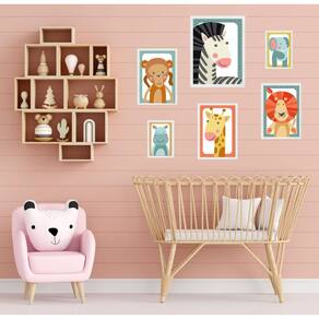 Kit Composição 6 Quadros Infantis Bichos Safari