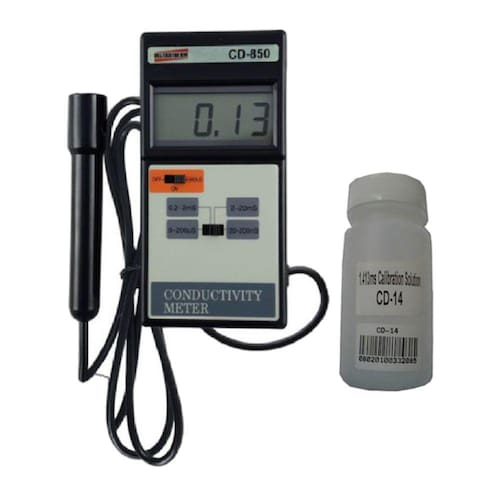 KIT CONDUTIVÍMETRO (MEDIDOR DE EC) MOD. CD-850 DIGITAL PORTÁTIL, FAIXA DE 0 A 200MS + SOLUÇÃO DE CALIBRAÇÃO MOD. CD-14 1,413MS P/ MOD. CD-830/CD-840/CD-850/CD-860/CDR-870 100ML