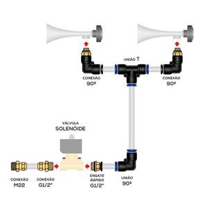 KIT DE INSTALAÇÃO PARA BUZINAS KAUAI, DESDE O TAMBOR DE AR ATÉ AS BUZINAS.