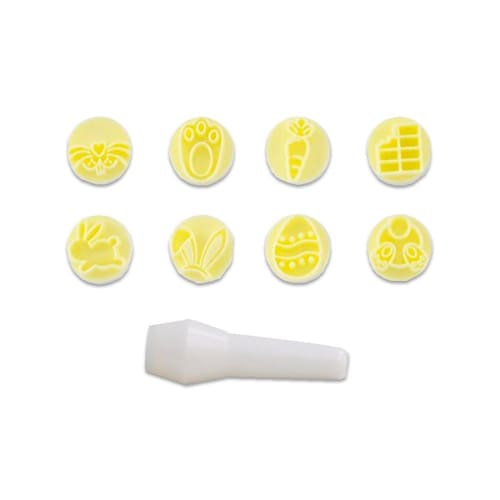 O kit vem com desenhos muito fofinhos que podem ser utilizados em diversas ocasiões. Ele conta com 8 carimbos e um cabo.