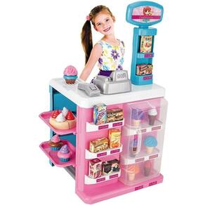 Especificações tecnicas da Confeitaria: - Bip e Luz - Cupcakes, bolo, sorvetes e caixinhas - Caixa registradora e dinheirinho - Geladeira com porta abre e fecha - Acompanham os acessórios da foto