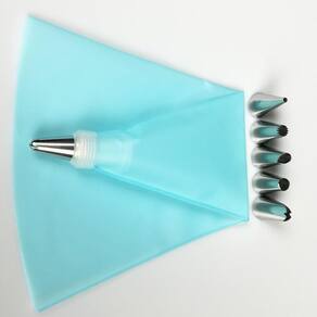kit 1 sacos confeitar profissional em silicone reutilizável. Saco reutilizável, durável, flexível e prático, silicone da melhor qualidade, interior liso para espremer facilmente e não agarrar produto algum, facilitando a lavagem, exterior áspero, melhor para prender, tem alça para pendurar e facilitar na hora da secagem. Faça qualquer decoração para seus bolos, doces, cookies, chocolates, tortas e cupcakes. - 1 saco de silicone de 35 cm - 6 bicos de metal os mais vendidos - 1 matriz para os bicos