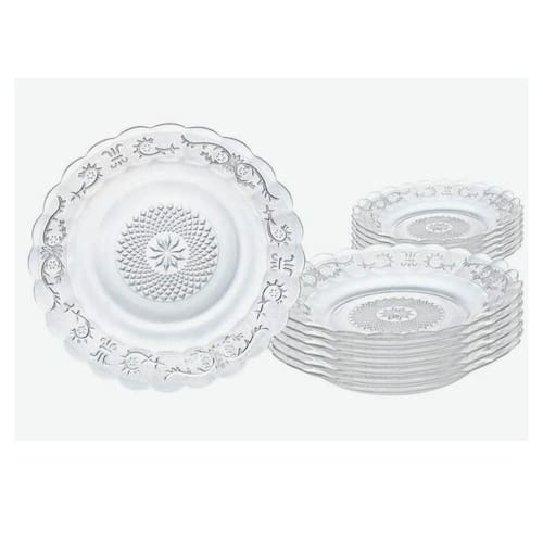 Uma peça que une qualidade, elegância e sofisticação para deixar sua mesa posta impecável em qualquer ocasião. Produzidos em vidro transparente de alta resistência, os pratos apresentam um design clássico e refinado, com detalhes decorativos em relevo, bordas delicadamente trabalhadas e um acabamento que valoriza a beleza dos alimentos, destacando sobremesas, massas, saladas, carnes, acompanhamentos e muito mais. Esse conjunto é perfeito para quem busca versatilidade e estilo, sendo ideal para o uso no dia a dia, mas também indispensável em ocasiões especiais, como almoços em família, jantares românticos, festas, confraternizações ou eventos formais. A durabilidade do vidro garante longa vida útil, enquanto a facilidade na limpeza proporciona praticidade, tornando-o um item funcional e sofisticado ao mesmo tempo. Além de sua utilidade, os pratos também podem compor a decoração da mesa, agregando charme e requinte ao ambiente. É uma excelente opção tanto para uso pessoal quanto para presentear, já que alia beleza, resistência e um toque diferenciado que impressiona a todos