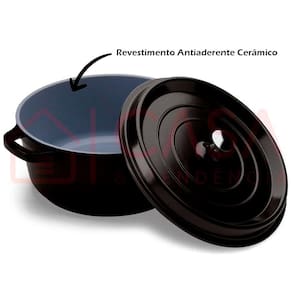 Suporta altas temperaturas, pode ir do fogão convencional e de indução direto à mesa. Em alumínio fundido e revestimento antiaderente de cerâmica, é mais resistente e reduz o uso do óleo nos seus preparos, além da sua tampa pinga gotas que auxilia no uso e na hora de servir. Lave com água e detergente neutro ou pode ser levada à máquina de lavar louças. Não coloque no micro-ondas, geladeira ou freezer.