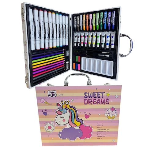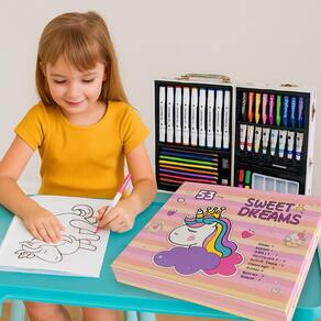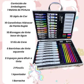 Kit Conjunto Caneta 53 peças Pintura Bobbie Estilo Touch Completa Cor: Unicórnio Rosa Kit Conjunto Caneta 53 peças Pintura Bobbie Estilo Touch Completa Maleta de Pintura Infantil 53 Peças Desperte a criatividade e transforme ideias em arte com a Maleta de Pintura 53 Peças Um kit completo que oferece tudo o que crianças, amantes da arte e iniciantes precisam para soltar a imaginação e criar sem limites. Compacta, leve e prática, essa maleta acompanha lápis de cor, canetinhas, tintas, giz de cera, pincéis e muito mais, tudo organizado em um estojo lindo, que encanta qualquer idade. Perfeita para presentear, estimular o desenvolvimento criativo e proporcionar horas de diversão artística Benefícios: