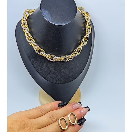 Este produto da grife Bina Castro é feito em Zamac com banho italiano garantindo a qualidade e durabilidade da peça.Uma peça delicada, com muita leveza, com design jovem e alegre. Essa peça foi feita para acompanhar os mais diversos momentos da sua vida.Elos grossa são levemente achatados e ao longo de toda corrente eles são ao mesmo tamanho.Além de perfeito o Colar de Elos é um acessório atemporal cheio de estilo e elegância para completar e iluminar os seus looks. Aposta certa!DADOS TÉCNICOSMedidas do Choker:Elos da Corrente : Oval Duplo Dourado com Prata Mix Material ; Metal Folheado com verniz cataforético Genero: feminino Comprimento: 40CmCom Extensor: 5CmDiâmetro: 3,5mmFecho: boia