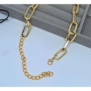 Colar Feminino elo Corrente quadrado Elos retangular Folheado a Prata e Dourado