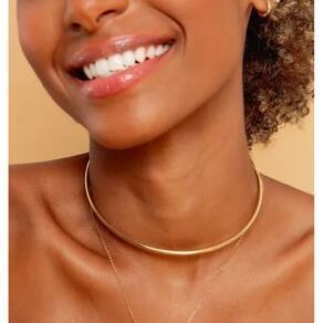 Kit Conjunto Colar e Brincos Choker Aro Liso Orgânico Oval Vazado Folheado Ouro Dourado Prata