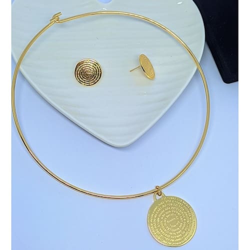 1 Choker Aro Rigido com Pingente 1 Par de Brincos