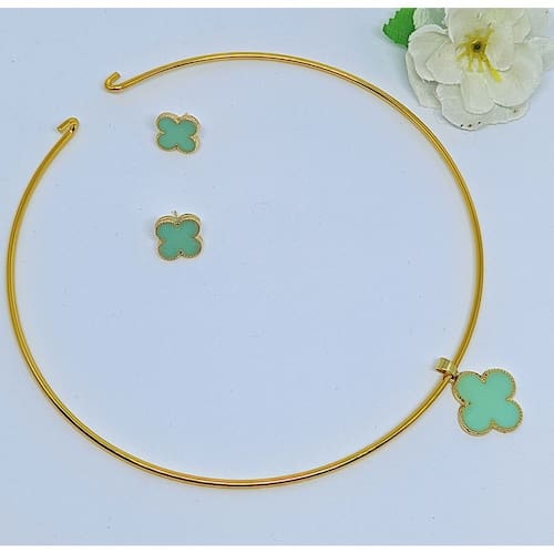 1 Choker Aro Rigido com Pingente 1 Par de Brincos