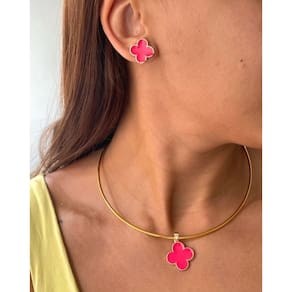 1 Choker Aro Rigido com Pingente 1 Par de Brincos