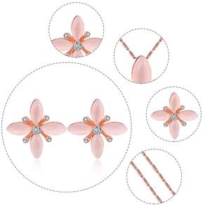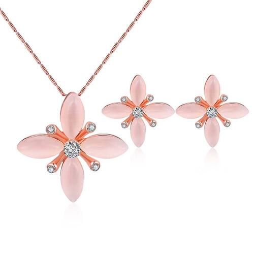Kit Conjunto Colar e Par de Brincos Flores Rose Luxo