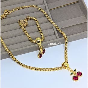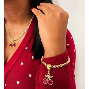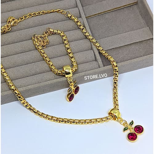 Informações : Corrente veneziana dourada! Com pingente de cereja! Acabamento em fecho lagosta! Tamanho do Colar: 45 cm +5 cm Extensor Tamanho da Pulseira 19cm + 4cm Extensor Tamanho do Pingente Cereja : 22mm Banho do Material: Verniz Italiano com Maior durabilidade do seu Brilho e nao perde sua Cor Fecho do Colar : Bóia Elos da Corrente: Malha dupla Veneziana Grossa Genero : Feminino Garantia : contra defeito ( e não Mal Uso )