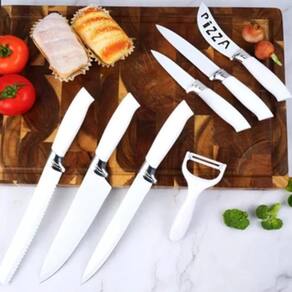 Conjunto de Facas 7 Unidades - Aço Inoxidável com Revestimento Antiaderente AntibacterianoEste conjunto de facas é perfeito para todas as suas necessidades de preparação na cozinha.Feitas de aço inoxidável com revestimento antiaderente e antibacteriano, elas garantem durabilidade, resistência e facilidade no uso.Cada faca possui alça ergonômica antiderrapante, proporcionando manuseio seguro e confortável.O conjunto vem em uma embalagem de alta qualidade, sendo ideal tanto para uso pessoal quanto para presente.Embalagem Contém:1 Faca do Chefe (30x4 cm)1 Faca de Cozinha (30 cm)1 Faca de Pão (30x2,5 cm)1 Faca de Legumes (24 cm)1 Faca de Pizza (21 cm)1 Faca de Descascar (19 cm)1 Descascador (13 cm)?? O vídeo é meramente ilustrativo.