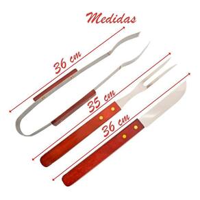 Kit Conjunto de Facas Para Churrasco Madeira e Inox 3 Peças