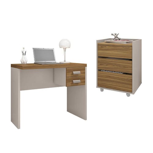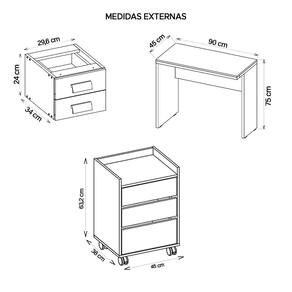 O Kit Mesa e Gaveteiros vão te surpreender com seu design e funcionalidade que podem apresentar. O conjunto Mesa e Gaveteiros possuem amplo espaço deixando seu setup muito mais organizado. Feito em MDP BP possuem maior resistência e durabilidade ao móvel.Mesa Studio 900:Altura: 75,5 cm Largura: 90,0 cm Profundidade: 45,5 Peso: 24,04 kgGaveteiro:Altura: 24,0 cmLargura: 29,6 cmProfundidade: 34 cmPeso: 6,06 kgGaveteiro 3G:Altura: 63,2 cm Largura: 45 cm Profundidade: 38 cm Peso: 18,35 kgESPECIFICAÇÕES TÉCNICAS Mesa Studio 900:Possui 1 tampoPossui 4 SapataGaveteiroPossui 2 puxadorPossui 2 gavetascorrediças telescópicasGaveteiro 3G:Possui Rodízios para melhor deslocamentoPossui 3 Gavetas com corrediças telescópicasPossui 2 rodas com travas 2 roda sem trava Peso suportado Gavetas: 3kg (cada)Prateleiras: 1kg (cada)Tampos: 25kg (cada)Acompanha manual de montagemTonalidade do produto em: Lamina Mell / CacaoEstrutura em MDP BP de 15mm de espessura. HDF de 3 mm de espessura.Garantia 90 dias contra defeito de fabricaçãoEste conjunto chegará em sua casa separado em 3 Volumes(1º Volume)Altura: 46,2 cm Largura: 95,7 cm Comprimento: 11,7 cm (2º Volume)Altura: 11,5 cmLargura: 47,2 cmComprimento: 25,4 cm(3º Volume)Altura: 13 cm Largura: 62 cm Comprimento: 45 cm Recomendações de limpeza:- Limpar com pano macio, seco ou úmido, sem uso de produtos abrasivos. Pois, podem trazer danos ao produto.Sobre a entrega:- As transportadoras contratadas, não realizam entregas em apartamentos. Realizando assim a entrega na portaria do prédio.*Produto segue desmontado, montagem por conta do comprador.*Imagens do produto são meramente ilustrativas.