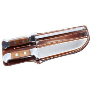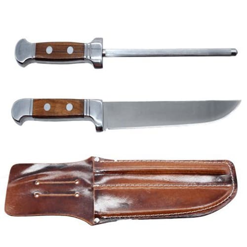 Kit Conjunto Faca Mais Chaira Com Bainha Churrasqueiro Bianchi O cuidado com as facas é essencial, elas devem estar sempre afiadas para facilitar o corte do churrasco, facilitando na hora de servir seus convidados. Esse kit acompanha uma faca, uma chaira e uma bainha produzidos em aço inoxidável, que confere durabilidade e resistência às lâminas, e cabos em madeira que facilitam a higiene e dão firmeza durante o manuseio. Bainha em couro. Indispensável para a hora de servir um delicioso churrasco, esse kit é perfeito para os churrasqueiros mais requintados até os assadores de fim de semana. Especificações: Faca 8 - 33cm Chaira - 33cm Ean: 7895445255732