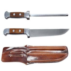 Kit Conjunto Faca Mais Chaira Com Bainha Churrasqueiro Bianchi O cuidado com as facas é essencial, elas devem estar sempre afiadas para facilitar o corte do churrasco, facilitando na hora de servir seus convidados. Esse kit acompanha uma faca, uma chaira e uma bainha produzidos em aço inoxidável, que confere durabilidade e resistência às lâminas, e cabos em madeira que facilitam a higiene e dão firmeza durante o manuseio. Bainha em couro. Indispensável para a hora de servir um delicioso churrasco, esse kit é perfeito para os churrasqueiros mais requintados até os assadores de fim de semana. Especificações: Faca 8 - 33cm Chaira - 33cm