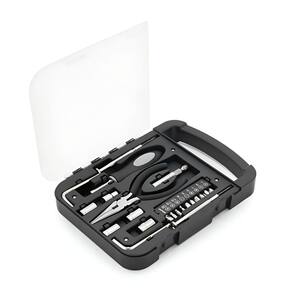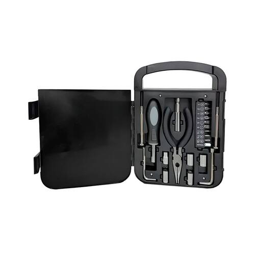 Kit Conjunto De Ferramentas Optima Caixa Prática E Funcional Pinça Chaves Allen Alicate Reparos E Manutenções Importada Ideal para pequenos reparos e manutenções rotineiras em casa ou no escritório, o kit conta com um alicate, um cabo extensor, um adaptador, jogo de nove chaves duas de fenda, quatro philips, três allen , cinco chaves de boca, duas chaves de precisão uma de fenda e uma phillips e dois cabos allen. As peças são acomodadas em uma maleta compacta, disponível na cor preta. Marca: Crowned