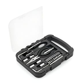 Kit Conjunto De Ferramentas Optima Caixa Prática E Funcional Pinça Chaves Allen Alicate Reparos E Manutenções Importada Ideal para pequenos reparos e manutenções rotineiras em casa ou no escritório, o kit conta com um alicate, um cabo extensor, um adaptador, jogo de nove chaves duas de fenda, quatro philips, três allen , cinco chaves de boca, duas chaves de precisão uma de fenda e uma phillips e dois cabos allen. As peças são acomodadas em uma maleta compacta, disponível na cor preta. Marca: Não Informado
