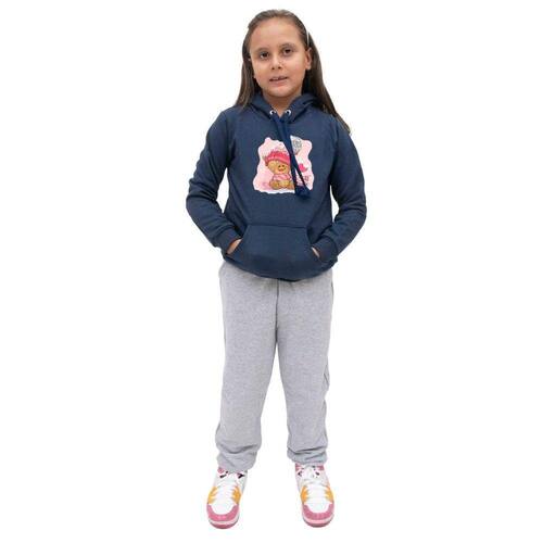 Kit Conjunto Moletom Infantil Feminino Blusa Canguru Capuz Estampa Urso de Pelucia Com Calça - Azul Marinho - 8