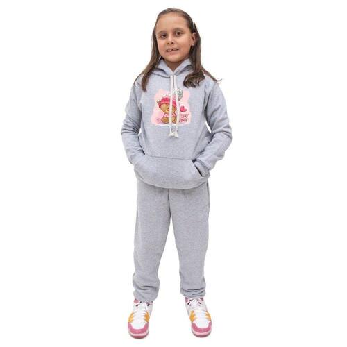 Kit Conjunto Moletom Infantil Feminino Blusa Canguru Capuz Estampa Urso de Pelucia Com Calça - Cinza - 10