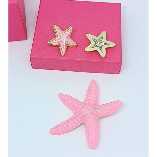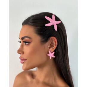 Kit Conjunto Par de Brincos estrela do Mar Resina colorido + Presilha de Cabelo bico de pato Prendedor Moda Praia Verão - Cor: Rosa