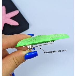 A estrela do mar é fixada em uma presilha de metal prateada no estilo "bico de pato", com 4 cm de comprimento, garantindo uma fixação firme e segura para o seu penteado. Com um impressionante tamanho de 7 cm x 7 cm, essa peça é ideal para adicionar um toque de charme extra, mostrando seu lado Sereia.