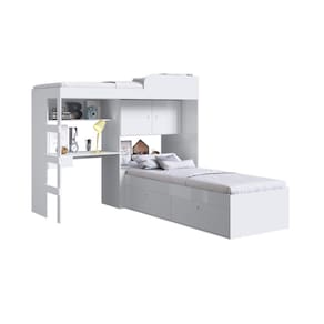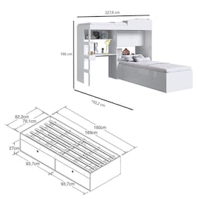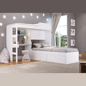 Conheça o Quarto Juvenil com Cama Alta Lion e cama Tókio, fabricado pela Art In Móveis. Sendo uma cama alta de solteiro multifuncional, no modelo Lion, e outra cama de solteiro com quatro portas, no modelo Tókio, para colchões de 188 X 78 cm com montagem esquerda ou direita. É compacta e ideal para transformar o seu ambiente por inteiro. Une várias funcionalidades em um único móvel, dispondo de duas camas de solteiro, escada, escrivaninha com gaveta, baú, prateleiras e armário. Este produto foi produzido no excelente material MDP 15 mm, com acabamento em Finish Foil Acetinado, que garante maior resistência e qualidade em seu móvel.