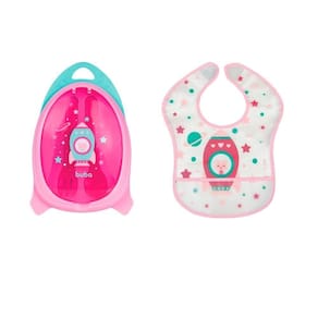 Kit conjunto refeição infantil introdução alimentar bebe papinha com talher e babador foguete buba Cor: rosa O kit refeição com talher da buba vai tornar as refeições muito mais atrativas. Possui bowl com divisória, tampa e talheres, ideais para passeios e viagens. Com personagem divertido, vai atrair a atenção do pequeno e estimular a alimentação.