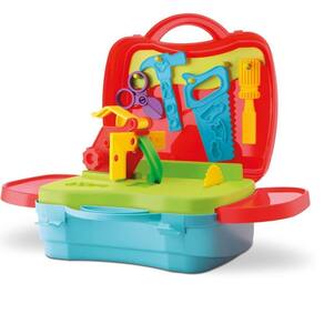 Com este kit, as crianças vão se divertir muito enquanto desenvolvem habilidades motoras, coordenação e concentração. A maleta vem com acessórios lúdicos que incluem tesoura sem ponta, serrote sem corte, chave de fenda, martelo, serra de bancada, extrusora de massinha e 4 potes de massinha.
