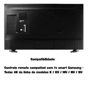 Compatibilidade: Controle remoto compatível com tv smart Samsung - Todos 4K da linha de modelos K / KU / MU / NU / RU