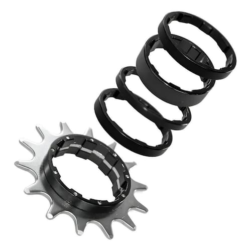 Acompanha 6 espaçadores para ajuste correto e é compatível com cubos de freehub de 7 a 12 velocidades. Resistente e fácil de instalar, é uma solução eficiente para quem busca um pedal mais direto e sem complicações.