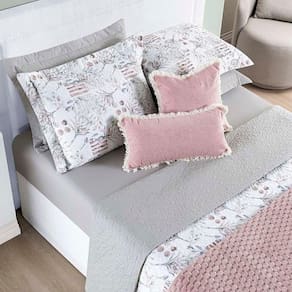 Tecido: Percale 80% Algodão - 20% Poliéster, garante maciez, respirabilidade e durabilidade.Acolchoado: Cobre Leito todo acolchoado, proporcionando maciez e fofura incomparáveis.Matelado: Detalhes em matelado que conferem um design sofisticado e elegante.