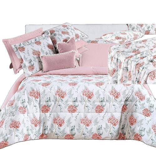 Kit Coordenado Edredom, Cobre Leito e Lençol Sensuale Super King Hortência 8 Peças - 80% Algodão, 20% Poliéster