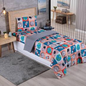 Kit Coordenado Edredom com Lençol Solteiro Alegria - Astronauta - 100% Poliéster Kit coordenado Edredom com Lençol Solteiro alegria com estampas vibrantes