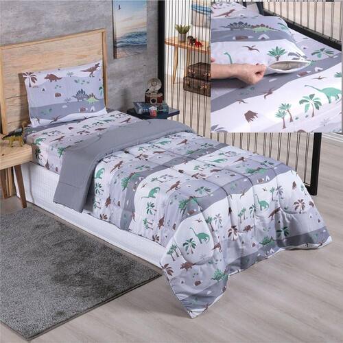 Kit Coordenado Edredom com Lençol Solteiro Alegria - Dinossauro - 100% Poliéster Kit coordenado Edredom com Lençol Solteiro alegria com estampas vibrantes