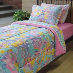 Kit Coordenado Edredom Lençol Solteiro Mymo Unicornio 100%