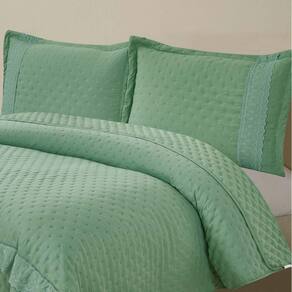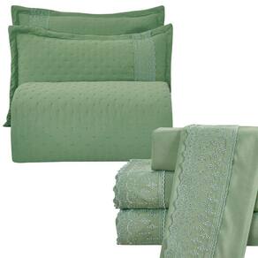 Kit Coordenado Grécia Cobre Leito + Jogo De Cama Queen Bordado Inglês 300 Fios - 7 Peças - Verde