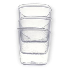 Conteúdo da embalagem: 03 copos Composição: 41% acrilonitrila butadieno estireno abs , 35% polipropileno, 6% policarbonato pc , 9% elastômero termoplástico tpe , 4% poliéster Capacidade: 35 ml Medidas aproximadas: altura 5 cm, largura 4,5 cm e profundidade 5 cm Bpa free e phtalates free Evita a confusão de bicos Fácil de limpar e prático de usar Idade recomendada: a partir de 0 meses