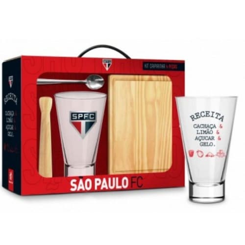 agora os torcedores do tricolor podem aproveitar uma super caipirinha com muito estilo e irreverencia enquanto assistem o jogo do timão. Uma caipirinha que se preze precisa de ingredientes de boa qualidade e um kit de respeito. O kit caipirinha é composto por um copo, socador uma tábua e uma colher, e vai te auxiliar no preparo de uma das bebidas mais famosas do país. Só vai ficar faltando o limão, a cachaça, o açúcar e o gelo pra ficar no ponto e você aproveitar. Características: