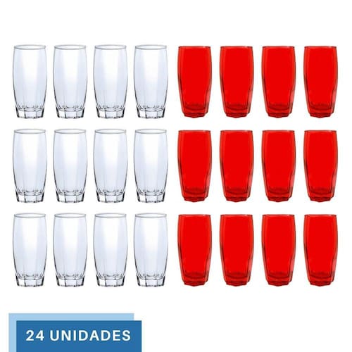 Itens inclusos: 12 unidades vermelho + 12 unidades transparente