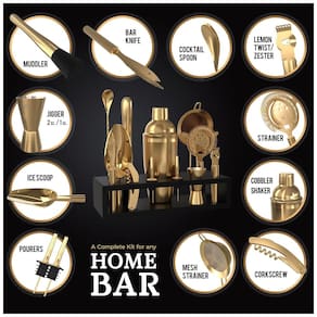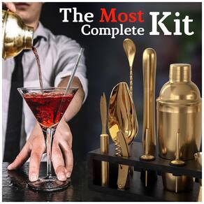 CONJUNTO DE BARRAS MAIS COMPLETO DISPONÍVEL Não se contente com um conjunto de barras incompleto. O nosso inclui uma faca de bar para cortar limões e limas, um zester de limão com uma faca de canal recém projetada para criar facilmente torções de limão e lima e um coador de malha fina para manter toda a espuma e polpa fora daquelas belas bebidas. MELHORES ACESSÓRIOS Nosso Muddler é quase mais longo para que não haja arranhões nos nós dos dedos. Uma colher para obter gelo picado em vez de pinças. PRESENTE IMPRESSIONANTE ACIMA DE 100 VALOR Absolutamente o melhor valor disponível. Mais de US 100 se comprado separadamente. Quando você dá um Highball Chaser Bar Set como presente, você pode ter certeza de que está oferecendo o kit de bartender da mais alta qualidade e mais completo disponível. Além disso, incluímos um E BOOK DE RECEITA DE COCKTAIL com sua compra. LINDO SUPORTE DE BAMBU O kit de coqueteleira vem em um suporte de bambu conveniente, bonito e extremamente resistente. Espesso e tem um belo acabamento claro que é completamente para alimentos. O suporte é de . largura . alta. QUALIDADE SUPERIOR Todas as ferramentas de barra são feitas com aço inoxidável polido polido 304 ou 403 à prova de ferrugem com acabamento em aço inoxidável banhado a preto. Todas as ferramentas são seguras para alimentos