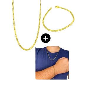 Kit cordão correntinha 60cm+pulseira masculina grumet dourado fina 2mm aço inox básica minimalista Kit cordão correntinha 60cm+pulseira masculina grumet dourado fina 2mm aço inox básica minimalista Cordão masculino com 60cm fino modelo grumet 1x1 com elos de 2mm de espessura na cor dourado, minimalista perfeito para homens que querem ficar na moda e dar um up no visual. Não perde a cor, não fica preto, não enferruja, não causa alergia. A prova dágua. ====================================== Fotos reais do produto na galeria Detalhes técnicos: Marca: visujóias Modelo: corrente 3mm Espessura corrente: 2mm Comprimento: 60cm Incluso: 1 unidade corrente+ 1 unidade pulseira Material: aço inox : 6 meses. Todas as peças possuem tratamento antialérgico =================================================== P:minha compra é segura R:toda compra que é feita aqui está em ambiente seguro, isso significa que se caso ocorra algum imprevisto faremos o estorno. R: sim. P: produto é a prova d'água R: sim, pode usar em piscinas e praias que não escurece. P: tem R: sim, todos os nossos produtos tem de 6 meses, contra defeitos de fabricação. Todas as informações de cuidados são enviados junto com o produto. P: posta em quanto tempo P: posso trocar se não servir R: sim, enviamos nosso contato junto com o produto para orientação sobre troca. P: posso devolver se não gostar R: sim, caso não goste do produto é só entrar em contato conosco que iremos orientá-lo como efetuar a devolução. Dúvidas Pergunte à vontade, estamos aqui. ficaremos felizes em responder rapidamente. Aguardamos sua compra e estamos ao seu dispor : Marca: Não Informado