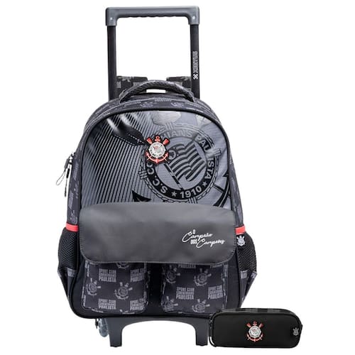 Mochila de rodinha: Escudo na frente em pvc patch Fechamento por zíper resistente Cursor personalizado Bolsos laterais para garrafa Alças de costas acolchoadas e ajustáveis Protetor de hastes acolchoados para as costas, permitindo diferentes formas de uso deste modelo - no chão com as rodinhas ou nas costas. Rodas em gel proporcionam deslize suave, silencioso e estabilidade em qualquer superfície. Hastes achatadas com sistema de auto regulagem, que ajustam facilmente a altura para o conforto ideal. Zíper bicolor com dentes de nylon super resistentes, que unem durabilidade e estilo. Cobre zíper que protege e aumenta a durabilidade do fechamento. Estampa e forro personalizados Dimensões: Largura: 30cm Altura: 40cm Comprimento: 15cm