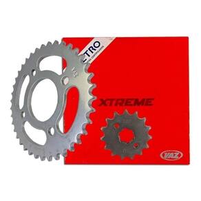 itens inclusos: 01 coroa - 01 pinhão compativel com: speed 150 para os anos: 2007 - 2008 - 2009 - 2010 - 2011 - 2012 marca fabricante produto: vaz obs: não acompanha corrente