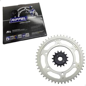 Kit Coroa Pinhão Riffel XL 700 TRANSALP XL 600 TRANSALP Produto: Kit Riffel Carbon. Descrição e aplicação: Coroa: 47 dentes, passe 525, fabricação em aço carbono 1045.Pinhão: 15 dentes, passe 525, fabricação em aço 20CrMnTi.Corrente: Não inclusa no kit. Este kit de relação é compatível com os seguintes modelos de motocicletas: XL 700 TRANSALP ano 2008 até 2014XL 600 TRANSALP ano 1991 até 2000 Peça nova marca Riffel. Conteúdo da embalagem: 01 Coroa01 Pinhão Observação: O produto pode ter alguma variação quando comparado com a imagem. Dimensões da embalagem: Altura: 10cm / Largura: 30cm / Profundidade: 30cm / Peso: 2,3Kg Sobre a empresa: A SF Motos iniciou suas atividades em janeiro de 2007 como concessionária da marca Kasinski, destacando-se como um dos principais revendedores no Brasil. Após a saída da Kasinski do mercado brasileiro em 2013, a empresa se reinventou como importadora e revendedora de peças de motocicletas multimarcas. Seu principal objetivo é atender os clientes que ficaram desassistidos de peças devido à saída de alguns fabricantes do mercado nacional, com foco principal nas vendas online. ML 07/23