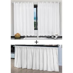 Kit Cortina de Cozinha e Pia Balcão Tecido Liso Branco Nosso cantinho merece o melhor cuidado possível e cada detalhe faz toda a diferença. Por isso preparamos pra você deixar mais linda e alegre sua cozinha com um investimento super baixo