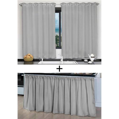 Cortina para Janela Cozinha Medidas Prontas: Largura 3,00m x Altura 1,20m Dividida em 2 partes de 1,50m x 1,20m Tecido: Cetim Vison / 100% Poliéster Cor: Cinza Ilhós Cromado, indicado para Varão de 28mm Cortina ideal para Varão de até 2m Não acompanha o Varão
